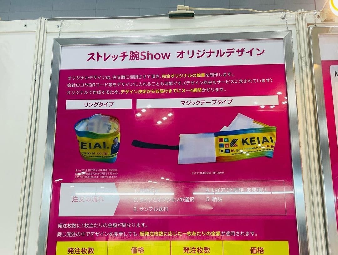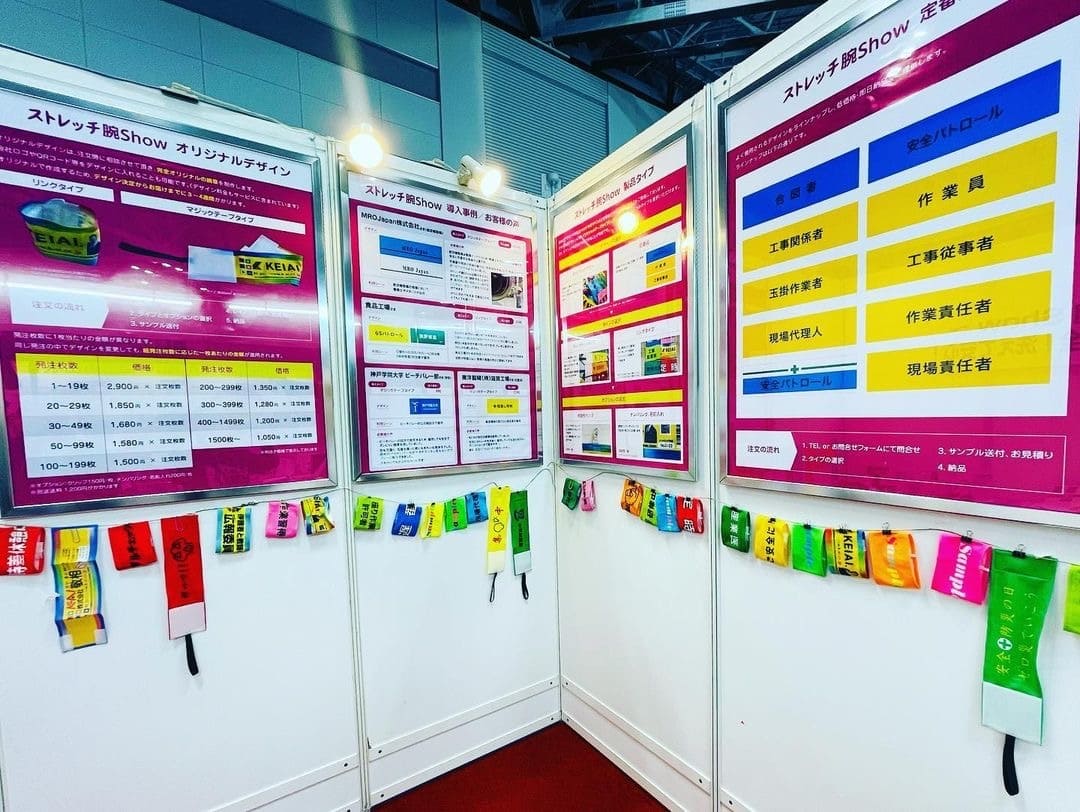 2023年12月6日(水)~8日(金)の3日間、東京ビッグサイト(東京・江東区)にて、飲料・酒類にかかわる製品が一堂に出展する国際商談展「第8回ドリンクジャパン -飲料 液状食品 開発・製造展- 」(主催RX Japan株式会社)が開催されました。 弊社は、オリジナル商品である「ストレッチ腕Show」を初出展いたしました。この「ストレッチ腕Show」は、ストレッチ性が高く、長時間着用してもズレにくいため、安全ピンが不要。洗濯もできて耐久性にも優れた、全く新しいタイプの「腕章」です。 飲食店様やメーカー様のご要望に合わせて、オリジナルデザインにも対応していることから、展示会期間中は、多くの関係者様に興味を示していただいました。