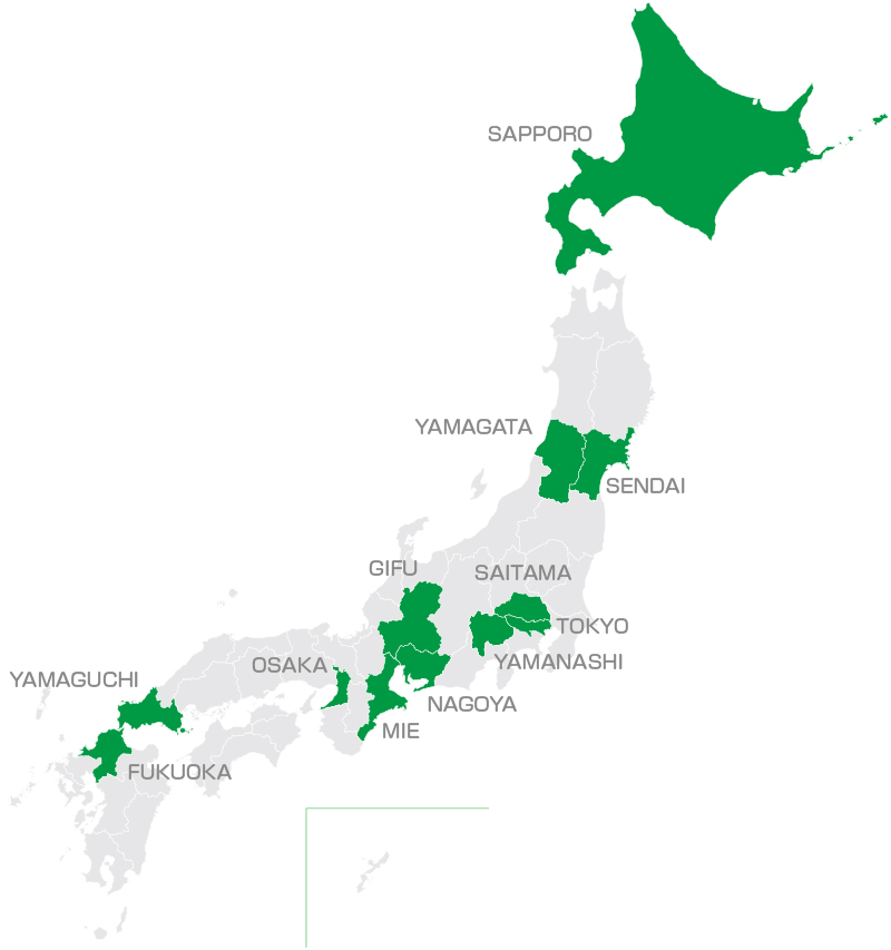 | 仙台支店 | place Google Map | 〒984-0011 宮城県仙台市若林区六丁の目西町4-16 一番館101号室 TEL022-766-8021 FAX03-6455-6814 |